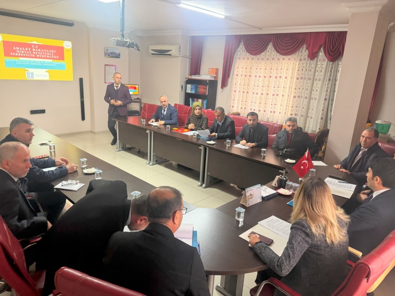 Toplantı, Cumhuriyet Savcısı Eyyüp Özdil başkanlığında, Denetimli Serbestlik Müdürlüğü Toplantı Salonu’nda yapıldı.